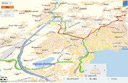 in "green" is the railway, in "blue" the motorway, in "red" the way home